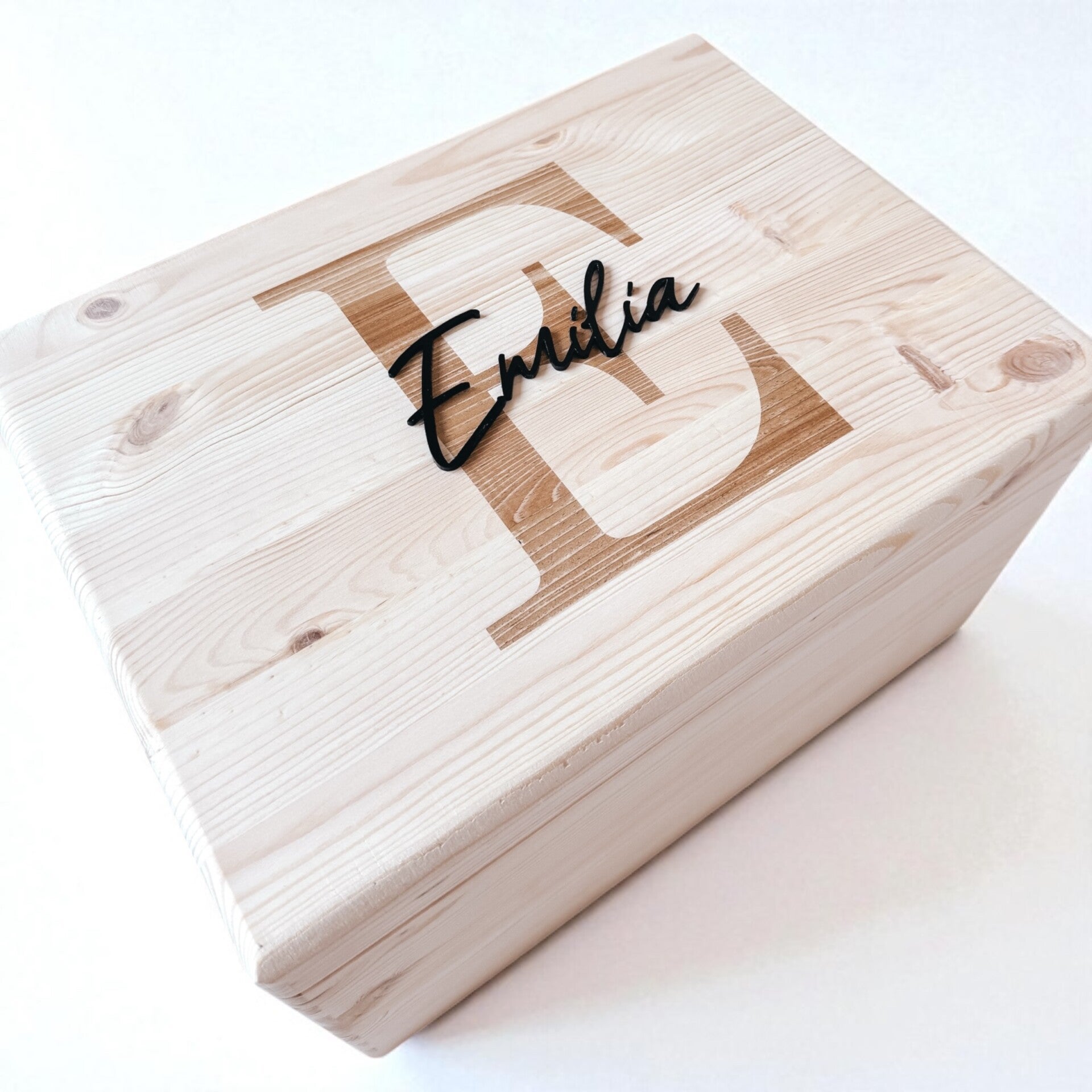 Unsere Grössen sind perfekt für die ersten kleinen Schätze deines Kindes. Egal ob das erste Armband aus dem Krankenhaus, süße Babysöckchen oder besondere Fotos – in dieser kompakten Box sind deine Erinnerungen sicher und stilvoll verstaut. Gefertigt aus hochwertigem, naturbelassenem Kiefernholz, mit einem stabilen Klappdeckel und abgerundeten Kanten, ist sie die ideale Wahl für eine liebevolle Aufbewahrung.
