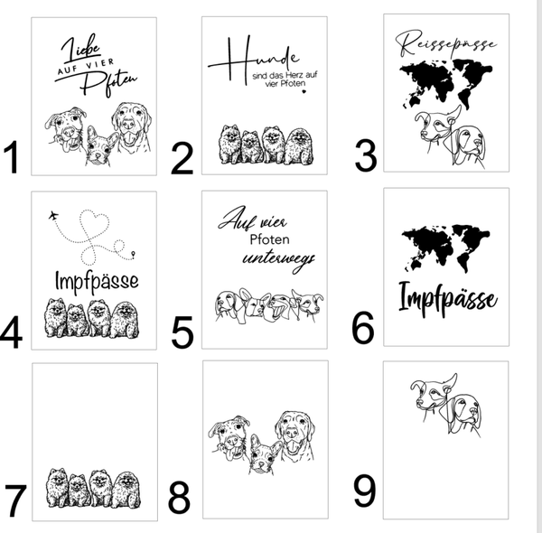 IMPFPASS "line art von vier Hunden"