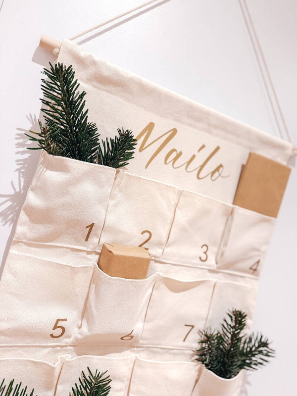 Personalisierter Stoff-Adventskalender – Mit Namen oder mit Namen und Zahlen