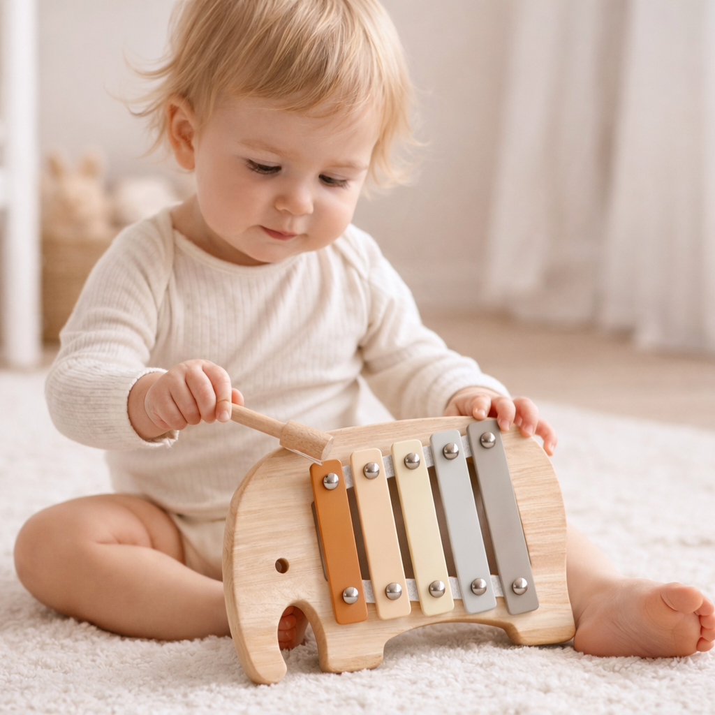 Holz Elefanten-Xylophon – musikalischer Spielspass im zeitlosen Design 🐘🤍